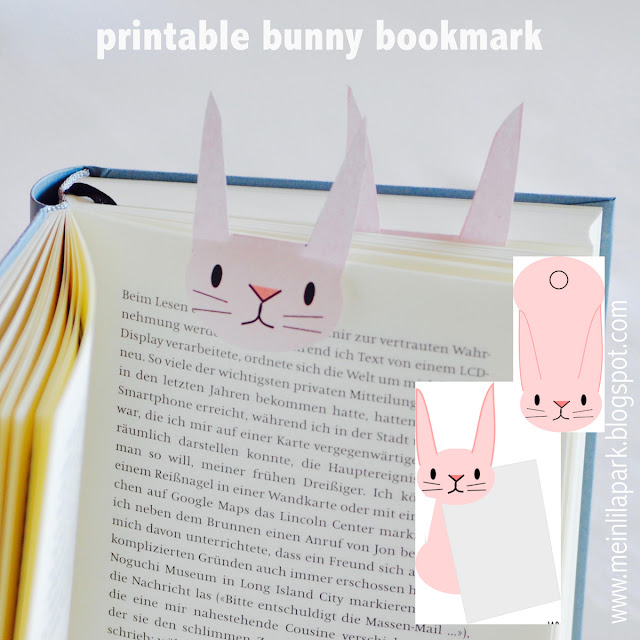 Just download and print the bookmark template out, cut the bunny out and fold the head so you can fold the cutie over a page.